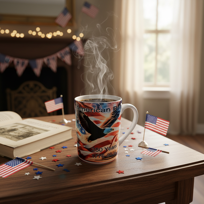 15oz coffee mug with American flag, Eagle and 250 years 1776-2026. Image same on bothe sides