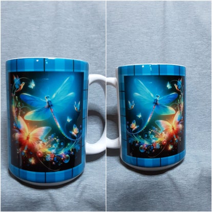 This 15oz. ceramic coffee mug has two images of a dragonfly . One on each side
