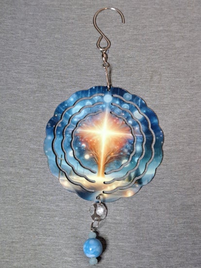 This 3in wind sipnner depicks a tree of life with a brilliant gold cross
