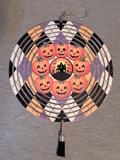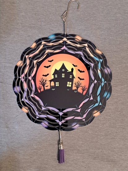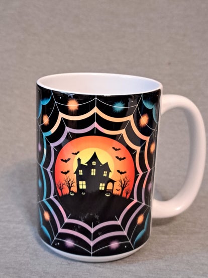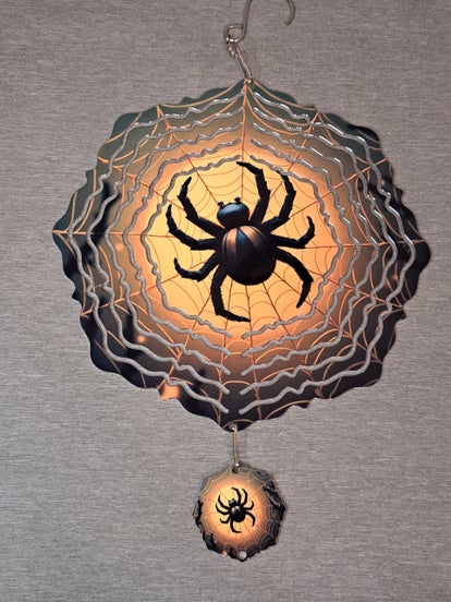 This cute sider is in a fun colored cob web. Great Halloween Decoration