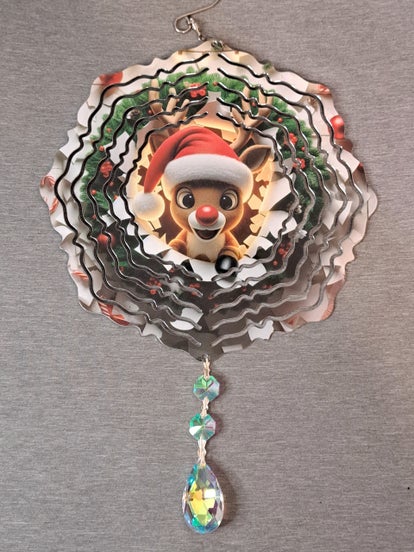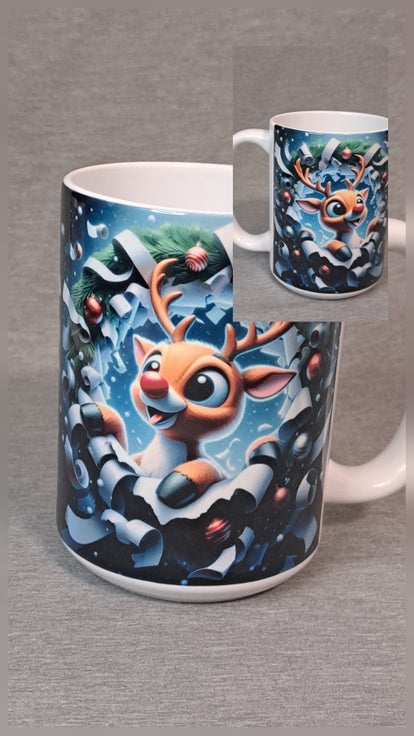 This design is different from the other Rudolph. cute little Rudolph breaking through Christmas wrapping paper.