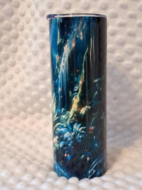 This has an image of a fantasy watrer fall with wispy glittery ribbon. Shown here are 3 images of around the tumbler
