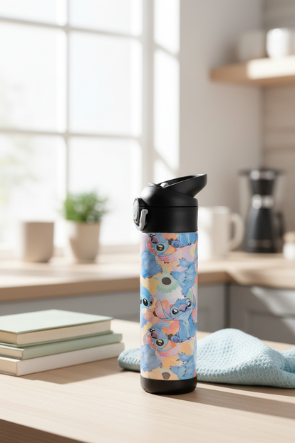 This sport bottle has a silicone straw. Stitch like pattern