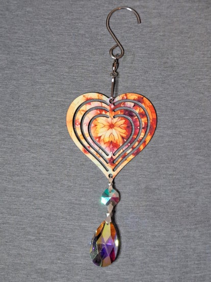 Glass heart in the center of stained glass. Extra dangle on the bottom